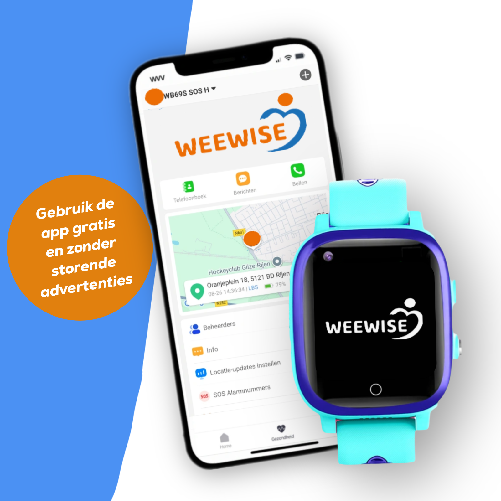 Ons Weewise WB15 Smartwatch wordt geleverd met een gratis applicatie waarmee u uw kind kunt 'volgen'.
