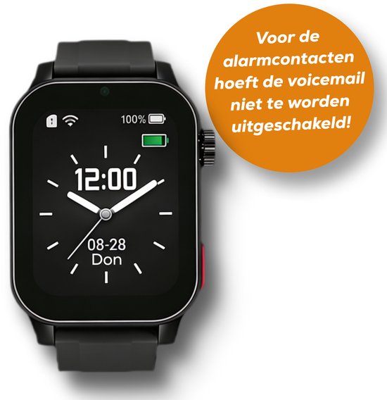 Bij een val of noodsituatie wordt automatisch contact gelegd met vooraf ingestelde alarmnummers. Ook hierbij geldt: de voicemail op het alarmnummer hoeft niet uitgeschakeld te worden; het horloge blijft bellen en het alarm blijft actief.